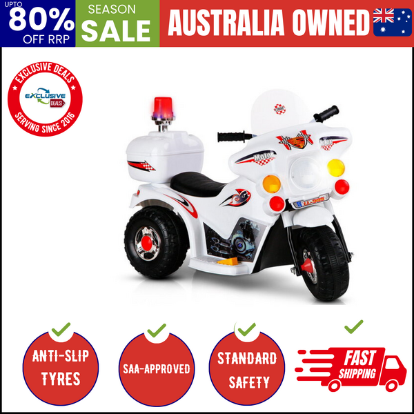 Let your little one experience the excitement of being a policeman/ policwoman with the ride on police motorcycle. The slip-proof handle bar and acceleration pedal to control the forward and reverse movement give your child control and a realistic driving experience. It comes with some cool entertaining features that will allow your child to have hours of fun. The anti-slp tyres also ensure safety while your children are exploring the area in a fun way. Get the ride on police motorbike today and watch your child's imagination run wild!