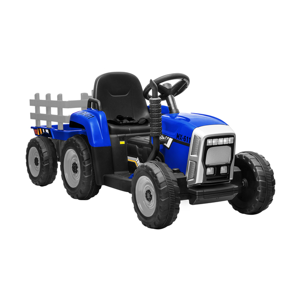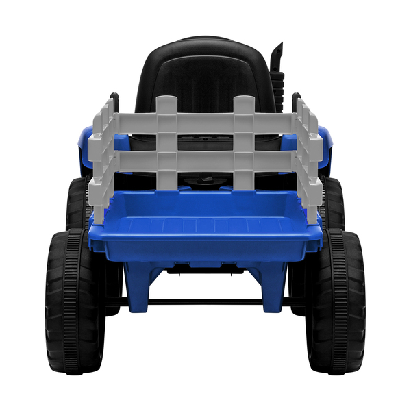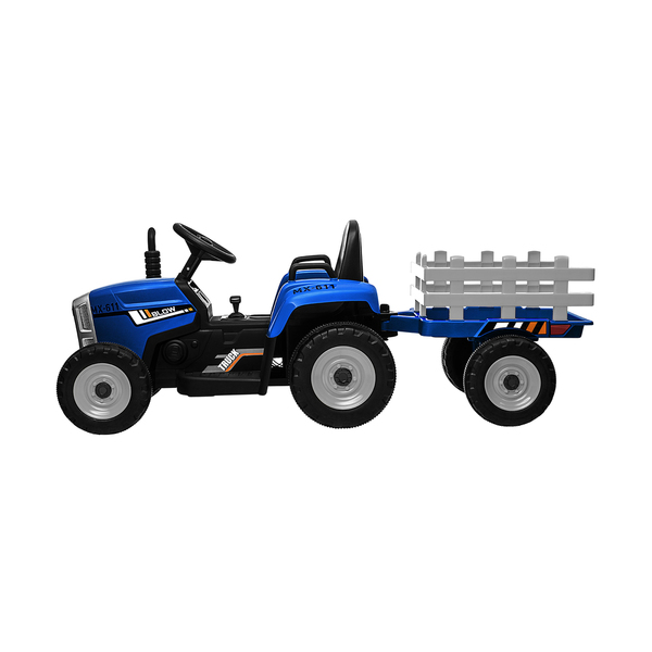 Featuring twin 12V 60W motors, the tractor is powered up for some serious play. Other striking features include the brilliant headlights and reversing lights, responsive steering wheel, standing exhaust and wide slip-resistant tyres. All in, this is one beautiful tractor that mirrors the real thing perfectly. Even the trailer has wood-like rails to give a touch of country ambience to the play.