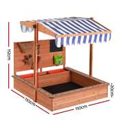 Kids Sandpit Wooden Canopy Sandbox With Cover Funnel Outdoor Toys 110cm