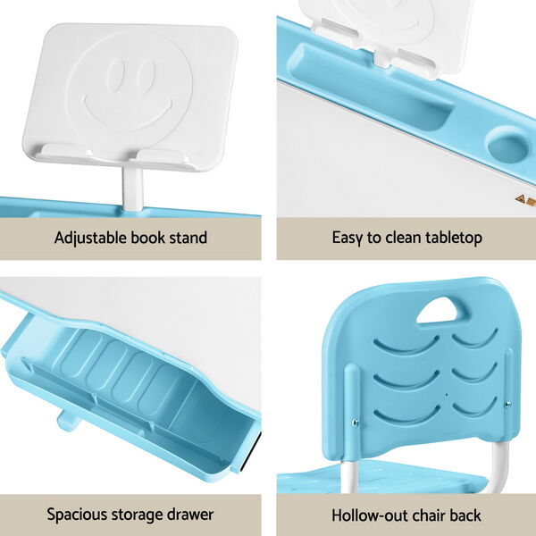 Kids Table and Chair Set Adjustable Study Desk w/ LED Lamp Reading Blue