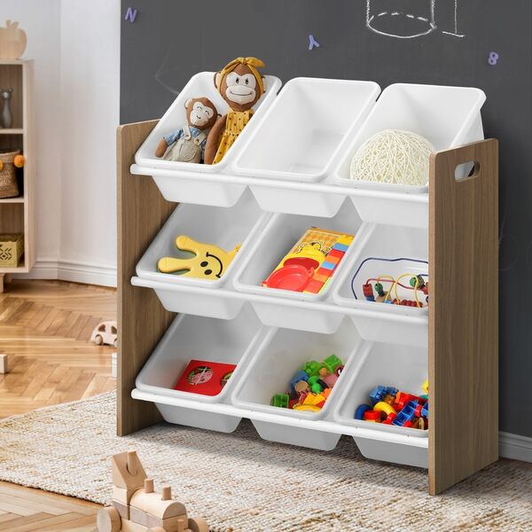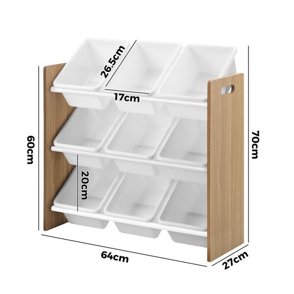 Kids Toy Box Organiser 9 Bins Storage Rack Natural White
