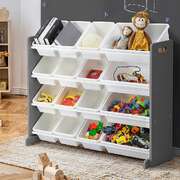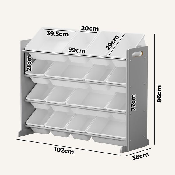 Kids Toy Storage Organiser 16 Bin Shelf with Removable Drawers Grey