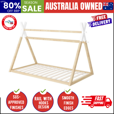 Kids Bed Frame Wooden Timber King Single Teepee House Frame Beds