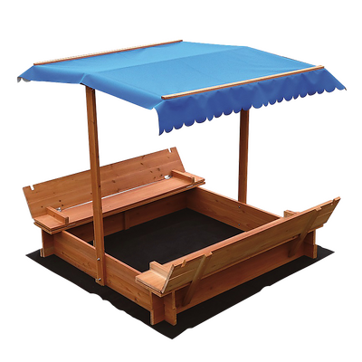 Our sandpit will delight your children for hours on end. No worries about exposing them to the harsh rays of the sun. Our fabulous sandpit comes equipped with a crisp white and blue UV-protected canopy. Your kids will stay happy and cool while at play in this amazing outdoor toy. When not in use, the seats are foldable and cover the sandpit to keep out debris and animals.