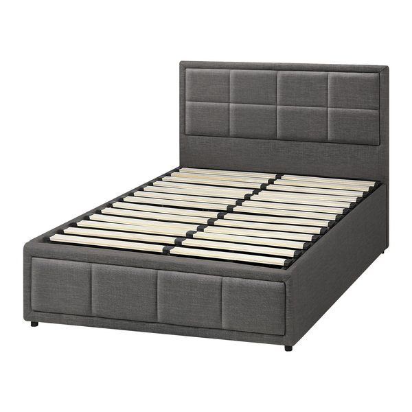 Bed Frame King Single Gas Lift Storage Base Fabric Grey