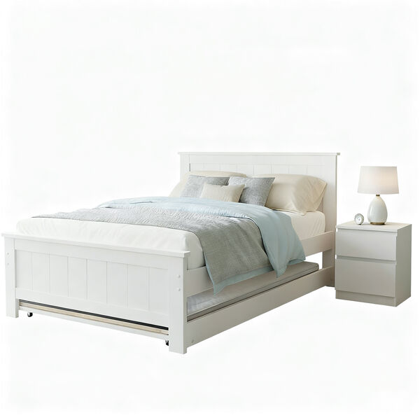 Space-Saving Solutions: The trundle bed offers an extra sleeping option without taking up additional room, while the bedside table provides functional storage for a clutter-free space.