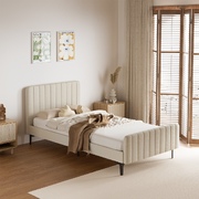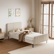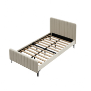 King Single Bed Frame Velvet Fabric Beige