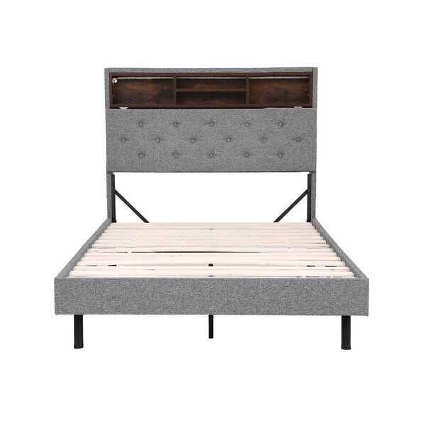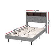 King Single Bed Frame With LED Mattress Base Platform And Hidden Storage Shelf Grey