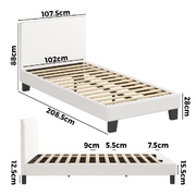 King Single Bed Frame with Wooden Slats and Boucle Fabric Bed Base Mattress Platfrom White