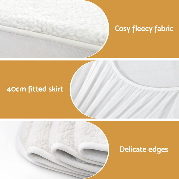 Sleep better every winter night knowing that you have our Giselle Fully Fitted Fleecy Fabric Electric Blanket to help you stay warm and cosy throughout your forty winks. Featuring a fleecy synthetic faux wool underlay that feels wonderfully soft, the electric blanket allows you to set up to nine different temperature settings using its detachable controller with LED display. A timer also lets you set the operation time of the blanket from one to twelve hours. And even if you forget to switch the electric blanket off, there is automatic shut-off and overheating protections for total peace of mind. Best of all, the electric blanket is machine washable. Simply unplug it (make sure to detach cable from electric blanket as well) and toss it into the washing machine for a good clean wash. Never let the chill and cold ruin your precious sleep again when you can have the warmth and comfort of a fleecy electric blanket to keep you company all night long.