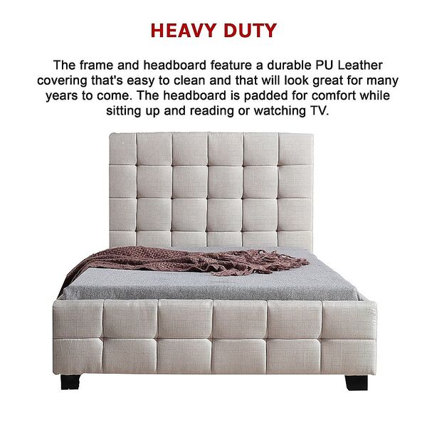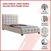 King Single Linen Fabric Deluxe Bed Frame Beige