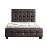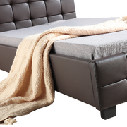 This bed from the expert craftspeople at Palermo measures 114 cm wide by 206 cm long, with a headboard that measures 88 cm tall (10cm leg 78cm headboard) from top to bottom. It fits a king single mattress measuring 106 x 203 cm. The frame and headboard feature a durable PU Leather covering that's easy to clean and that will look great for many years to come. The headboard is padded for comfort while sitting up and reading or watching TV. An attractive stitched-together look and clean, simple lines make this bed frame a perfect complement to the modern bedroom. And the brown colour adds visual appeal without being ostentatious.