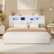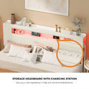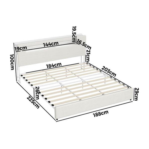 King Size Bed Frame With LED Lights USB Charging Headboard Bedroom Furniture