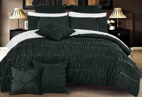 King Size Black Horizontal Cross Weave Quilt Cover Set (3PCS)