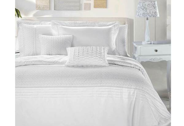 Elisa Quilt Cover / Doona Cover Set presents rich emroidered floaral patterns with lace among them on quilt cover.