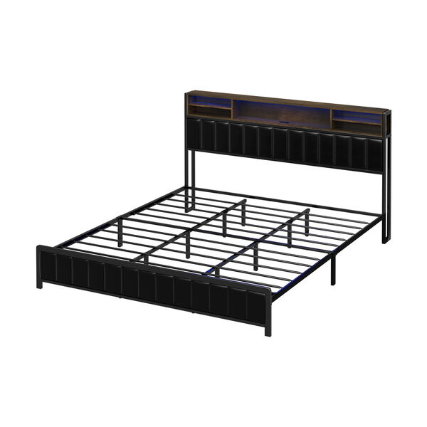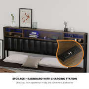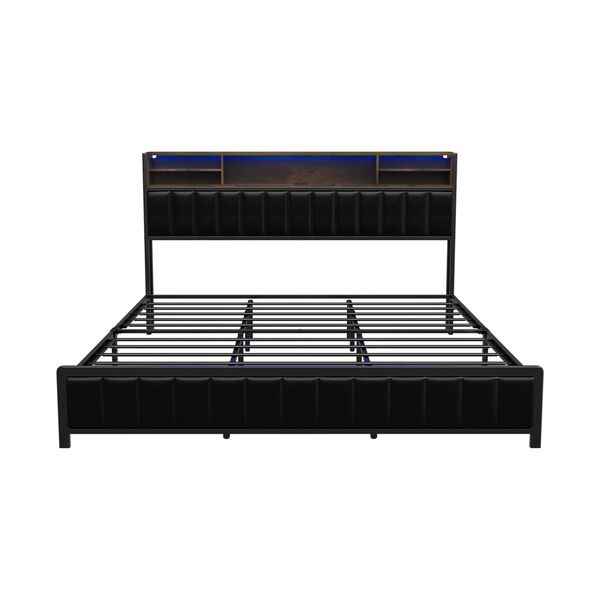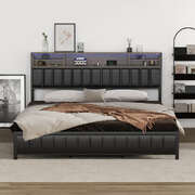 King Size LED Storage Bed Frame with USB Charging Headboard