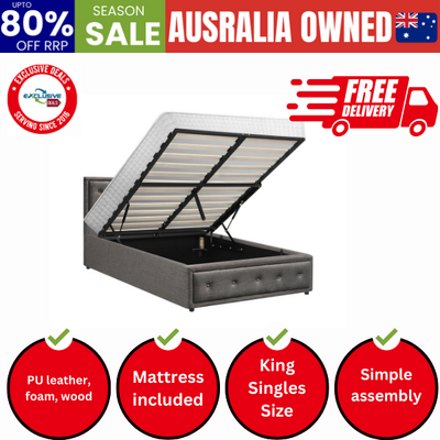 Bed Frame King Single Gas Lift Storage with Mattress Grey ENZO