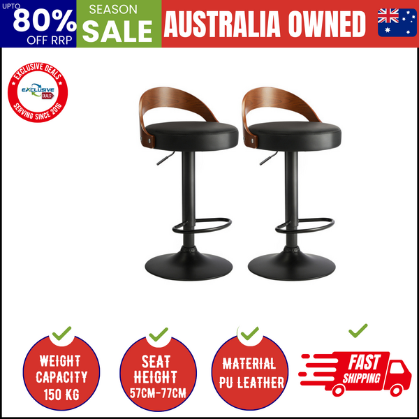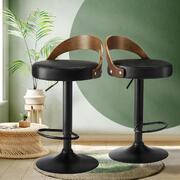 Kitchen Bar Stools Gas Lift Swivel Chairs Stool Wooden PU Leather x2