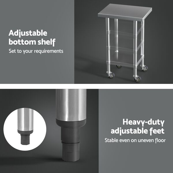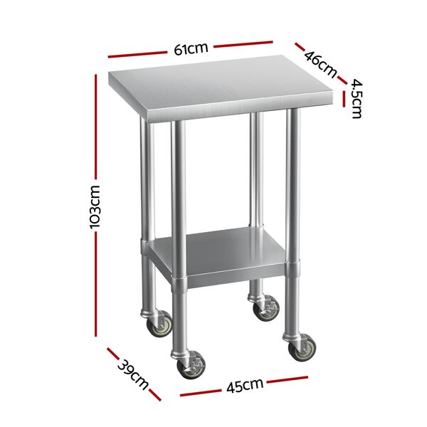 Stainless Steel Kitchen Benches Work Bench Wheels 61X46CM 430