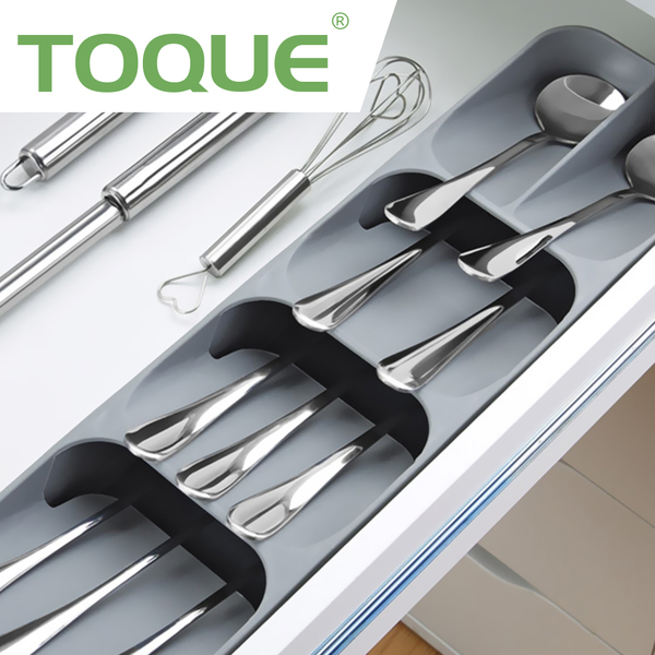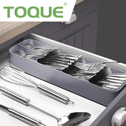 Our Cutlery Storage Box helps your kitchen drawer to get organized. With 5 compartments for proper allocation of utensils or spice jars. Made by non-toxic food grade material for safe use. Suitable for drawers with a minimum height of 8cm, lightweight and compact design for easy fit. Simple yet useful design, hassle free cleaning.