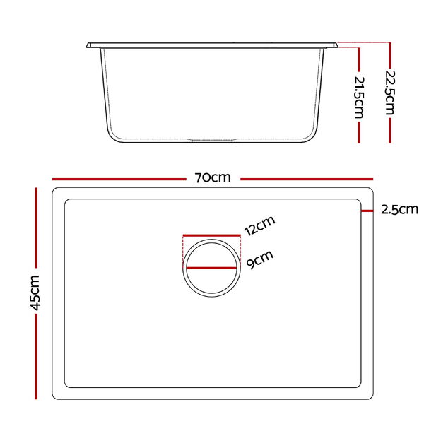 Kitchen Sink 70x45cm Granite Stone Sink Single Bowl Black