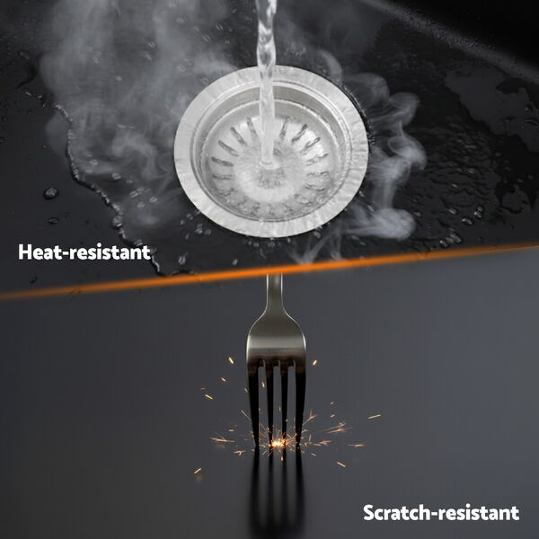 Elevate your kitchen utility with our Stone Sink series, designed for superior performance and lasting aesthetic appeal. This product is constructed using an advanced composite material, featuring a high concentration of 80% granite for a dense, highly durable body. The surface is engineered to handle rigorous daily use, demonstrating reliable impact and wear resistance against heavy things. Functionality is paramount: the sink is resistant to scratching, high heat (up to 280°C/536°F), and oil penetration, simplifying cleanup and maintaining a flawless appearance. Built with food contact grade materials, the non-porous structure is designed to support a hygienic preparation area. This versatile range offers both Single and Double Bowl options, available in contemporary Black or White finishes, ensuring an appropriate size and style is available for any home renovation or new build project.