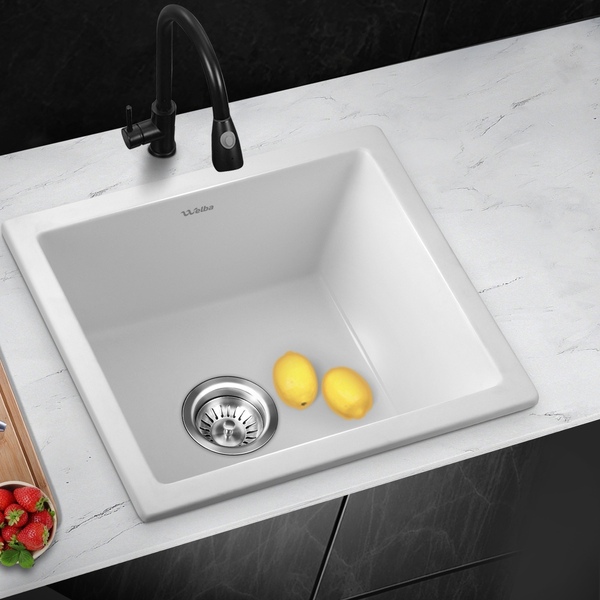Looking for a sink that matches your expectations in every way. Then look no further than the Welba Granite Sink. It is everything that you want your sink to be. And then some more. Constructed of a granite composition of 80% granite and 20% natural resin in a smooth burnt wood finish, the sink is simply rock solid. With totally desirables attributes such as enhanced wear, scratch and corrosion resistance, oil-proof, anti-bacterial, anti-discolouring and food-grade safe. Plus, the material also makes the sink easy to clean with a beautiful lotus leaf effect presenting itself after the cleaning. Better still, the deep bowl design and R10 corners provide plenty of space to do your dishes or prepare your cooking ingredients with minimum fuss. In fact, the sink comes with built-in thickened sound-deadening pads for better sound absorption that equals to whispers and library conversational levels. Something that we cannot say the same for our competition. Using the sink is a joy too with its fast moisture-absorbing and anti-splash qualities that leaves the sink drier after each use. Not least, the Watermark-certified 304 stainless steel waste strainer, included as standard equipment, ensures that nothing gets clogged up with the plumbing. Flush mount, under mount or drop-in mount, the Welba Granite Sink can be easily fitted as a wonderful addition to your esteemed kitchen. Own one today. Granite stone composite