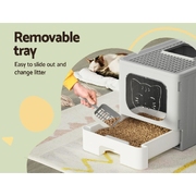 Large Cat Litter Box - Hooded, Foldable Tray with Scoop, Grey