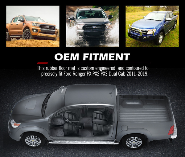 OEM Fitment: This rubber floor mat is custom engineered and contoured to precisely fit Ford Ranger PX PX2 PX3 Dual Cab 2011-2019.