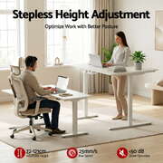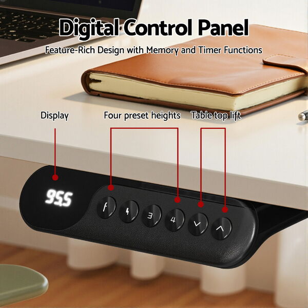 This versatile L-shaped electric standing desk? is a smart home office? upgrade. The splicing tabletop? allows flexible left or right setups to maximise corner space. Enjoy smooth, stepless height adjustment? (72-121cm) via a quiet dual motor? system, with four memory presets on the digital control panel. It features integrated cable management, a headphone hook, and is designed for easy set-up. The sturdy frame ensures reliable daily use for a dynamic work routine.