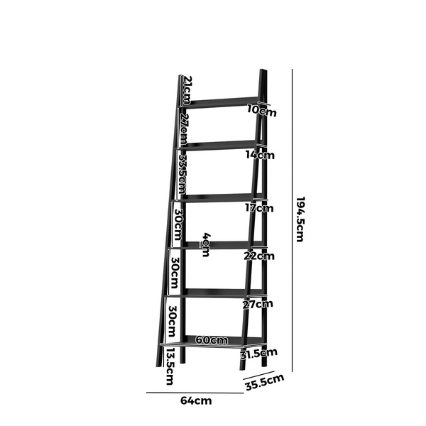 Bookshelf 6 Tier Corner Ladder Shelf Home Storage Display Rack Black
