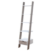 5 Tier Ladder Shelf White & Grey Oak Elegance