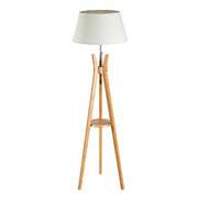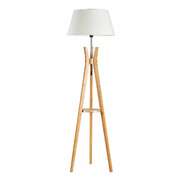 Modern style bamboo wood tripod floor lamp washed white linen shade.