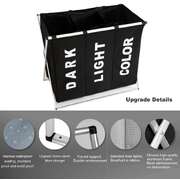 3 in 1 Large 135L Laundry Clothes Hamper Basket with Waterproof bags and Aluminum Frame (Black)