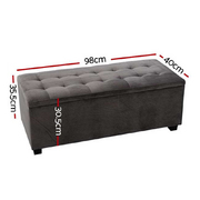 Looking for a storage solution with more taste? Look no further than our premium Artiss Storage Ottoman. With an elegant tufted seat and upholstered in skin-soft velvet, our ottoman is simply luxurious to rest on and adds a plush touch to any home. But more than that, it also provides a neat storage space for your home essentials. Blankets, throws, pillows, magazines and even toys can be stowed away in a discreet, easy-to-access manner. Made of quality material, the ottoman is strong and sturdy and stands up to durable use. The lift-up top enables easy access while its robust hinges ensure that it will stay open and not falter easily. Not least, the ottoman has detachable legs that enable it to be more versatile in use. So whether you are using the ottoman as extra lounge seating, bedroom decor or your favourite footrest, our multifunctional and versatile ottoman matches form with function perfectly and elegantly.