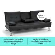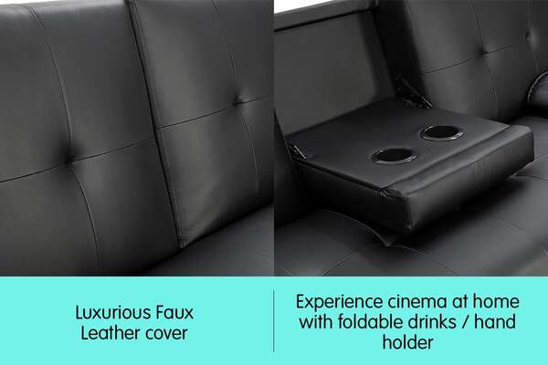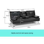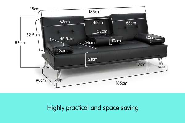 Measuring (w) 185cm x (d) 90cm x (h) 82cm, this sofa bed features timber frame as well as 2 cup holder spaces and comfort seating to provide a sofa that's truly comfortable to sink back into and relax.