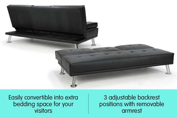 It's easily convertible into extra bedding space for your visitors, this is designed with multi functionality in mind. It features leather upholstery with thick cushioning providing superior comfort. Highly practical and served with a contemporary flair.