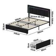 LED Bed Frame Double Size 4 Drawers Adjustable Head Black