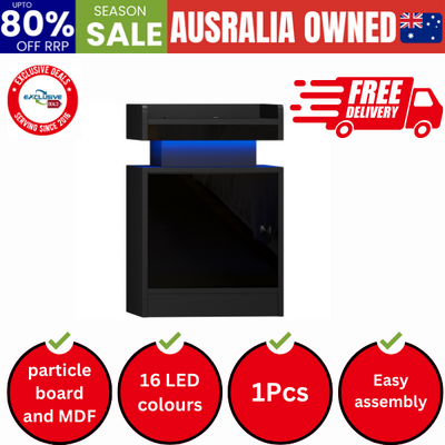 But what's really astounding about this bedside table is the customisable LED lighting with 16 colours and 4 flashing modes to create a spectacular lightshow or ambient lighting for perfect rest and relaxation. The bedside table can even be a showcase for your treasured mementos or collectibles with display lighting. Everything is easily set with a handy remote control at your fingertips. Plus, two useful AC power outlets and a USB-A and a USB-C port are also built-in for convenient charging or powering of your favourite media devices.
