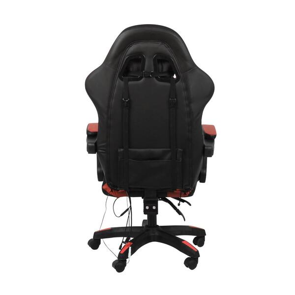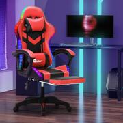 LED Gaming Chair, Massage & 135° Recline, PU Leather, Height Adjustable, 160kg (Black&Red)