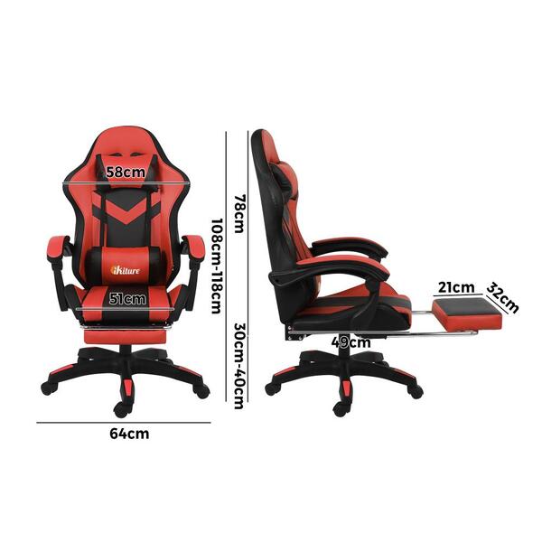 If you'e into gaming or the gaming chair look, then this EXTG LED Gaming Chair is right up your alley. Designed to create the perfect sitting positioning for play or work, our gaming chair is not short on creature comforts. Such as the plush leather seating, versatile adjustments, retractable footrest, smooth movements with omnidirectional castor wheels and certified quality components.