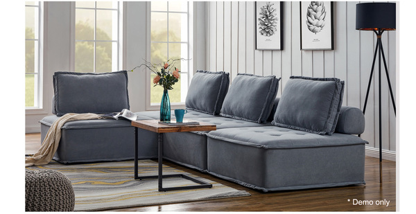 Leon Armless Sofa Chair Sectional Light Grey Fabric