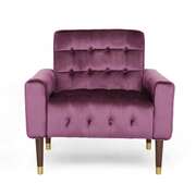 HAND-CRAFTED DETAILS - This accent chair is upholstered and button-tufted in jewel-toned velvet with a waffle stitch. Its seating design is plush and inviting against tapered birch legs in dark espresso with golden tips.