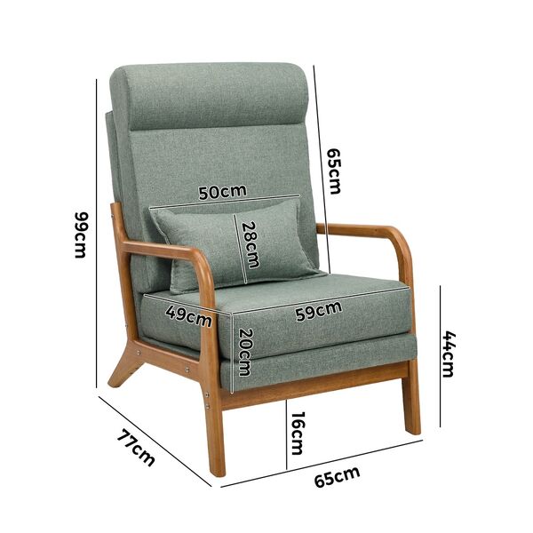 Linen Fabric Armchair Lounge Chair with Lumbar Pillow Green