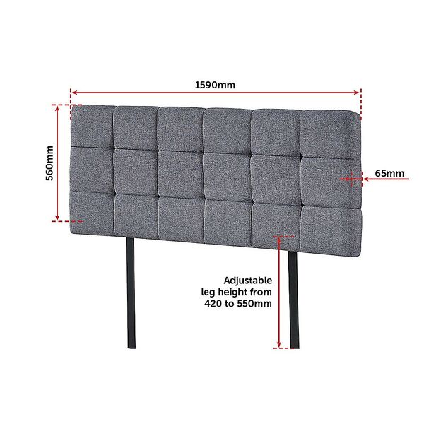 Stylish Linen Fabric Queen Bed Deluxe Headboard - Grey
