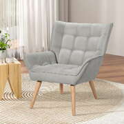 Armchair Lounge Chair Sofa Linen Fabric Cushion Seat Grey