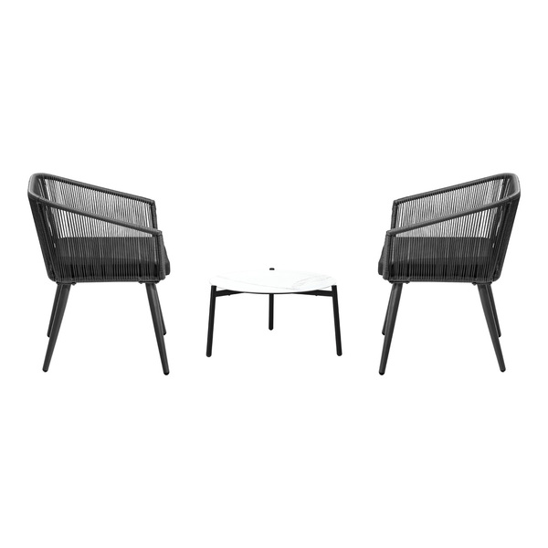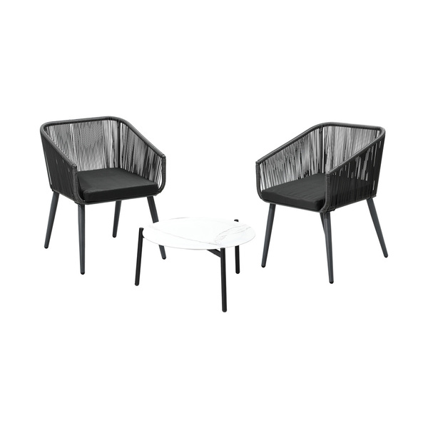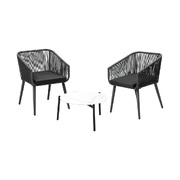 3PCS Outdoor Lounge Set 50cm Coffee Table Polyester Chair Rope