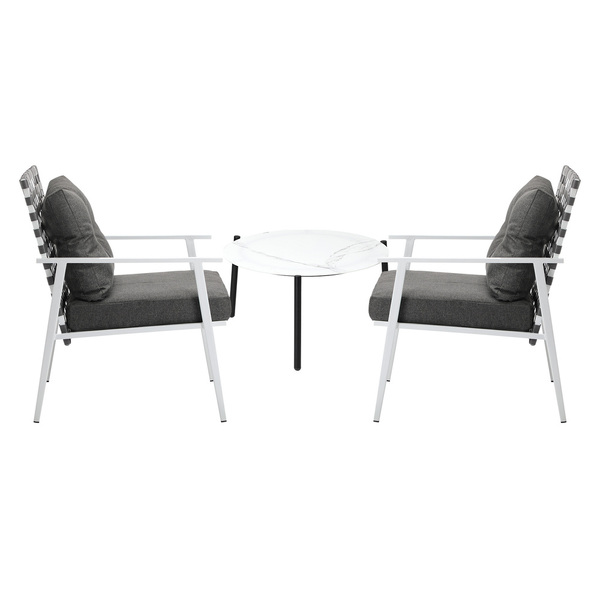 If you are looking for a classy and sophisticated outdoor set that adds a touch of marble-resque aesthetics to its setting, then this Outdoor Set is well within your radar of stylish furniture. None the ordinary and everything the exceptional.