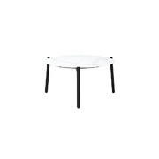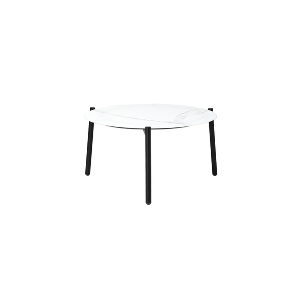 Design-wise, the three-legged profile of the coffee table is unique in stature while extending its durability and strength with a black powder-coated steel construction.