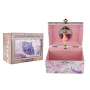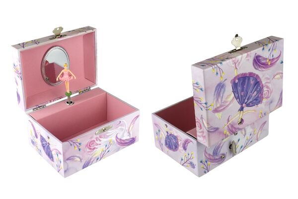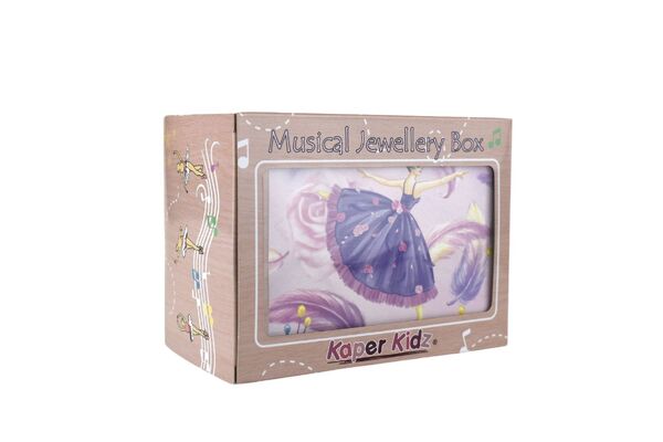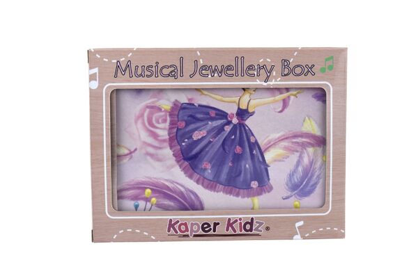 Children will love this magical musical jewellery box from Kaper Kidz. It is sure to put a smile on their faces when they open the lid as they watch the ballerina twirl to the music playing within. Each jewellery box is covered in beautifully illustrated pictures of dancers, ballerinas and more so you can proudly display this jewellery box on any shelf or table. On the back of each box is a small handle that can be wound up to play the music hidden within the jewellery box. The music will only play once the lid is opened and the figurine will spin along to its tune. Each box has been flocked inside with soft velvet fabric, to keep precious things safe. Behind the spinning figurine, a mirror features to show off the figurine as it spins. This music box plays to the tune For Elise . Each musical Jewellery Box from Kaper Kidz is designed as a decorative object for sorting, storing and displaying precious items.